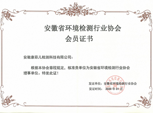 安徽省環境檢測行業協會會員證書